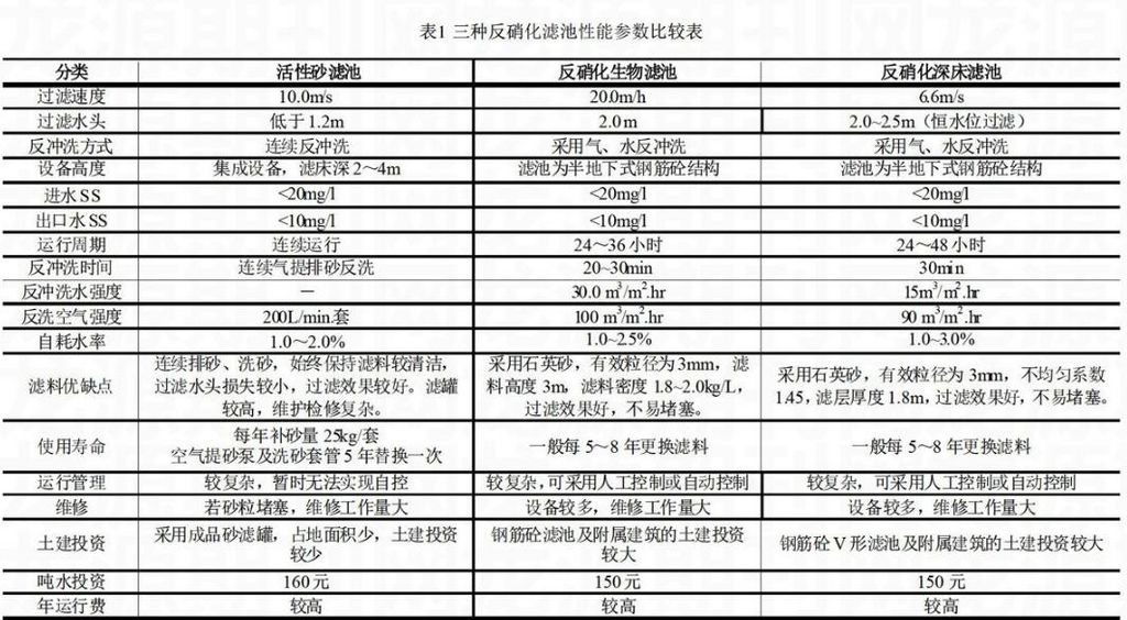 根據(jù)三種反硝化濾池的原理和特點(diǎn),它們的性能參數(shù)的比較詳見表。